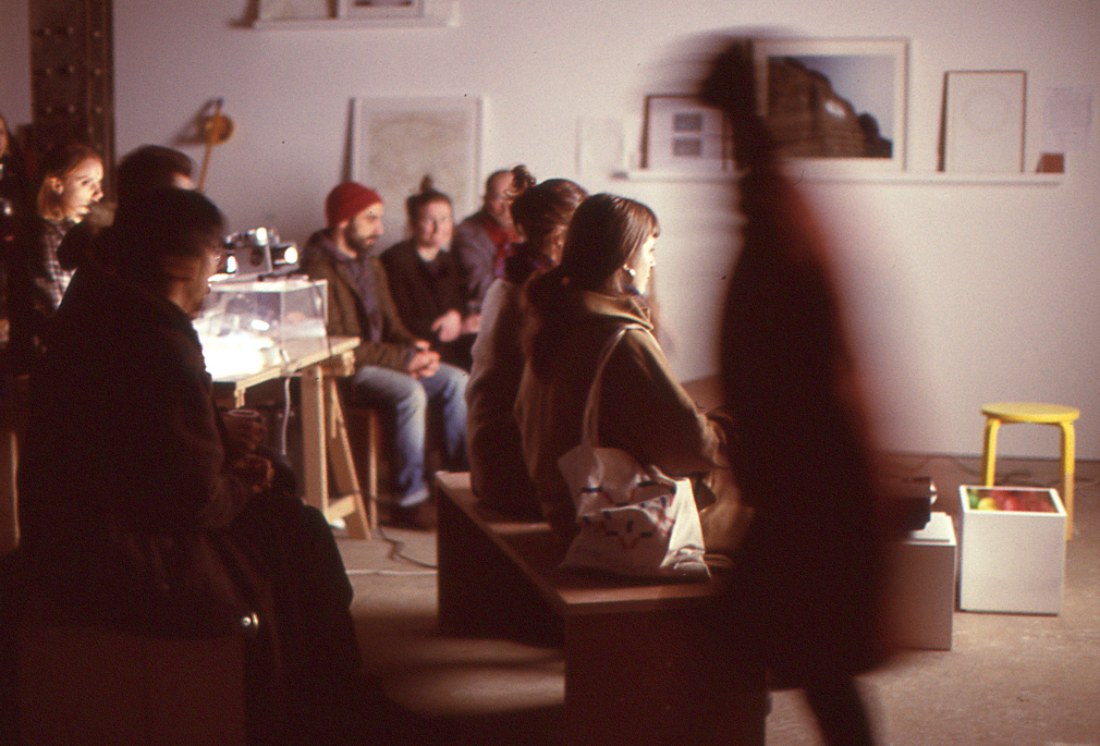 Slide Night takes the formal shape of a traditional slide talk, this one structure acting as a grimcrack portmanteau, within which function a series of diverse and disconnected movements, tangents and dead ends.